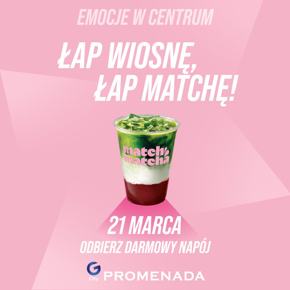 21 marca w godzinach 10:00-21:00, odbierz truskawkową matchę ze stoiska Match Matcha i powitaj nową porę roku w najlepszym stylu! 🌷